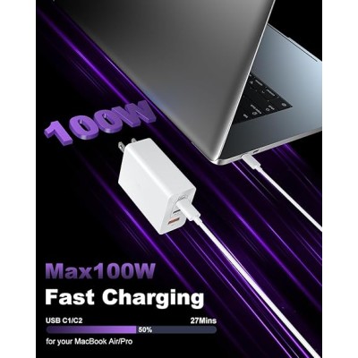 USB C Charger for iPhone 17 16,60W Multiport Type C Charger Fast Charging,2Pack 5-Port USB C Phon Chargers Block 10FT Long Type C Charging